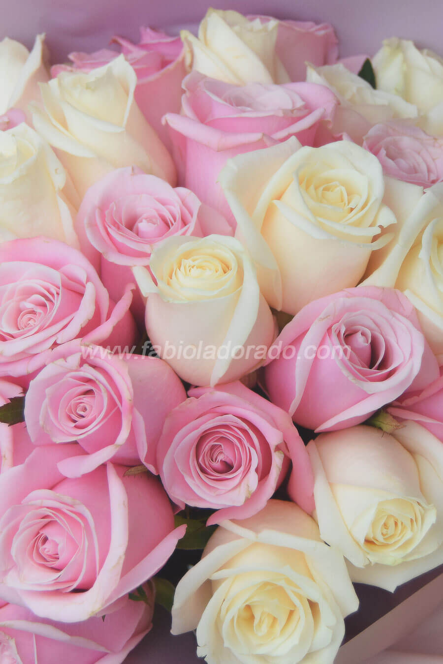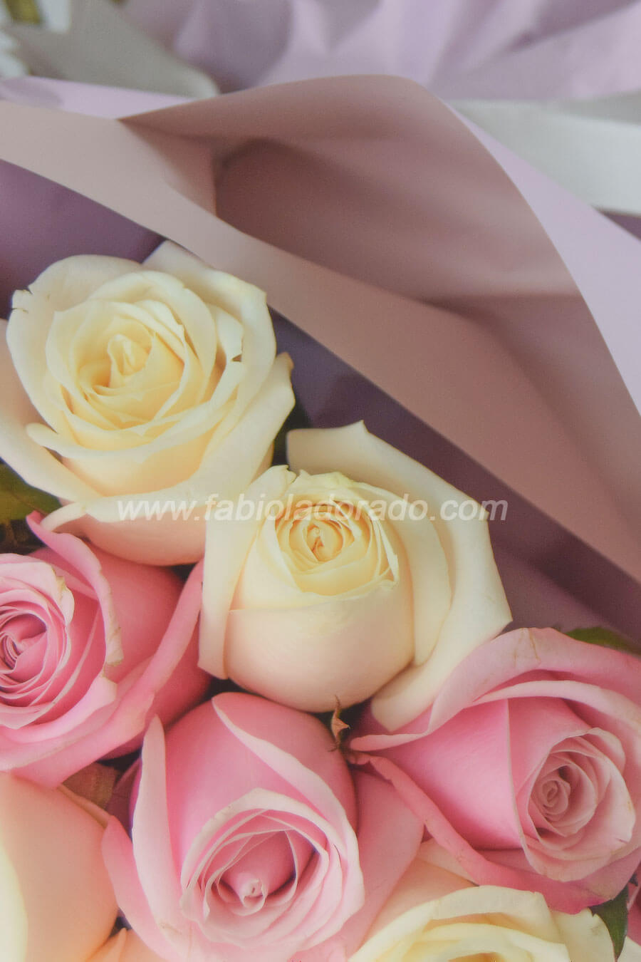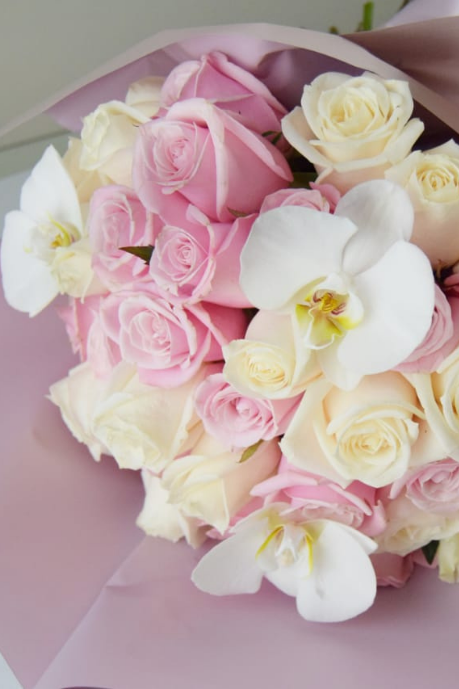 Bouquet de 48 Rosas beige, rosa y 3 Orquídeas Phalaenopsis.