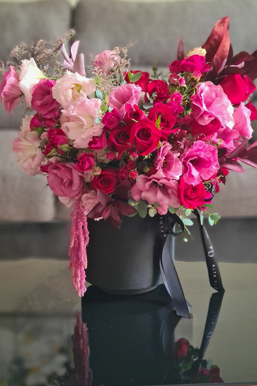 Base de Cerámica con Rosas, Lisianthus, Mini rosas y follajes pintados.